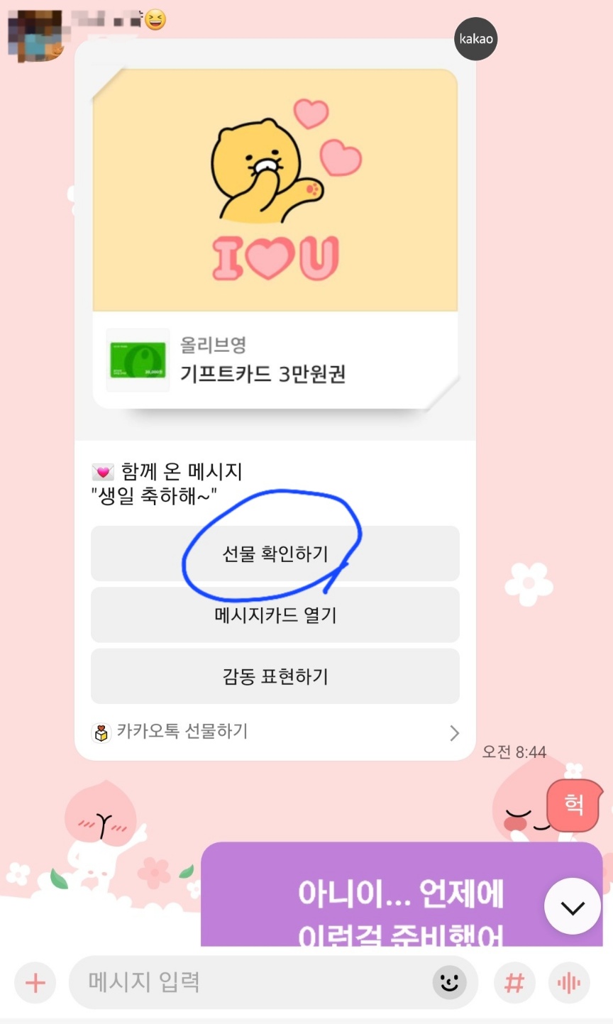 얼마 전 생일 이슈로 인하여 친구에게 카카오톡으로 기프트콘 선물을 받았습니다.
